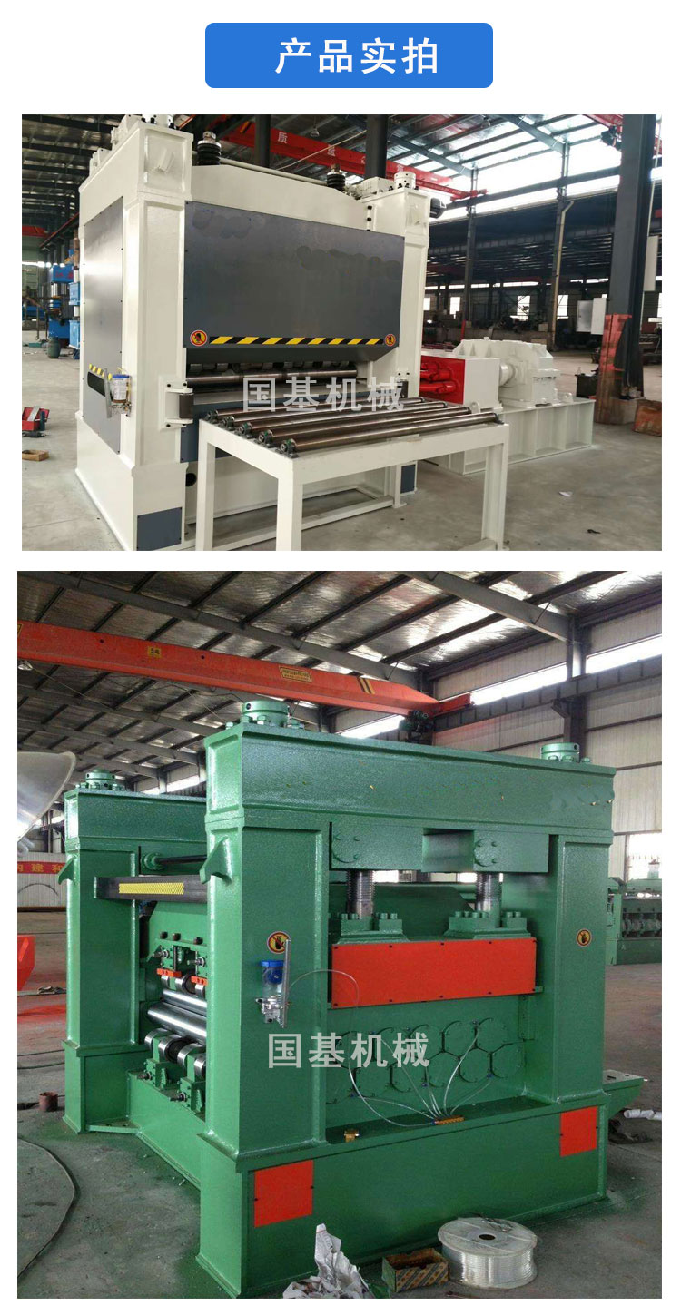 板料校平機為輥式金屬板料整平專用設備,通常由動力、主機和電器控制等部分組成。專用于金屬板料冷態校平,利用多輥工作原理,使板料在上、下校平輥之間反復變形,消除應力,將多種原始曲率逐步變為單一曲率(包辛格效應)達到校平的目的。根據校平精度要求,在上、下排工作輥外側,設剛性支撐輥(輪),構成四重式或六重式組輥結構。